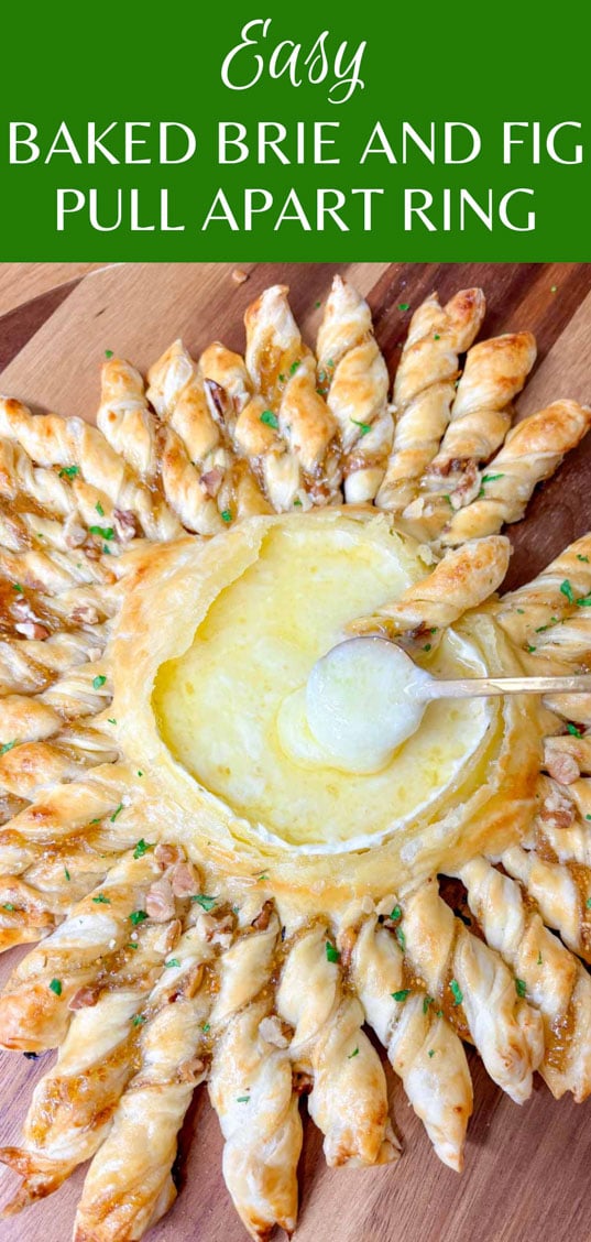 Brie and fig is one of the most classic and delicious flavor combinations. It's perfect for the holidays as it has a fun festive flavor! Baked brie is simply divine, it is the most rich, creamy and indulgent cheese you can make appetizers with. We love interactive appetizers that our guests get involved in. This pull apart dip ring is so easy to make and always a hit at parties. The brie is so divine paired with the crispy pastry fig and pecan twists.