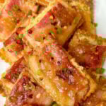 - Allow to cool until cool enough to handle, then carefully transfer the crackers to a serving platter (note that the melted sugar will be very hot once it comes out of the oven). Do not leave the crackers to cool completely on the wire rack or else they may stick and break when you try to remove them.