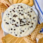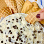 Cannoli Dip is an irresistible twist on the classic Italian dessert. A rich and creamy dip packed with ricotta, mascarpone, vanilla, powdered sugar, and mini chocolate chips. Served with pizzelle cookies, waffle cones, cookies, or fruit to dip it is simply divine.
