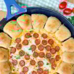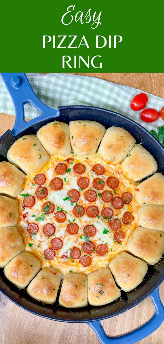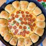 Pizza Dip Ring is a fun appetizer that is always a fan favorite! A ring of buttery pizza dough balls are baked around the most divine pizza dip. The dip has a creamy cheese layer, pizza sauce, mozzarella, and pepperoni! The pull apart bread ring is so fun and unique. All the great flavors of pizza are packed into this addictive dip!