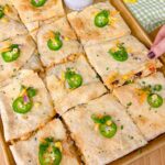 Sheet Pan Chicken Quesadillas are a game changer for family dinner or entertaining party food! 12 crispy loaded chicken quesadillas are made at one time on a sheet pan. Packed with flavor and prepped in a fraction of the time of regular quesadillas. These are a family favorite dinner and a fan favorite appetizer for holidays and game days!